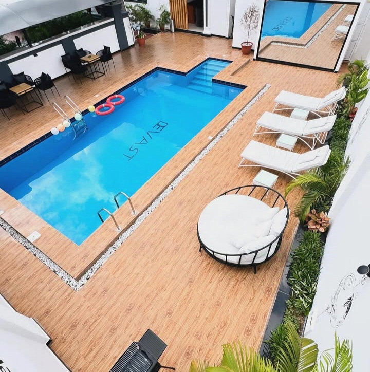 FEATURES: APARTMENT, RESTAURANT, BAR/LOUNGE, SWIMMING POOL, LAUNDRY, STEADY POWER SUPPLY, SECURITY